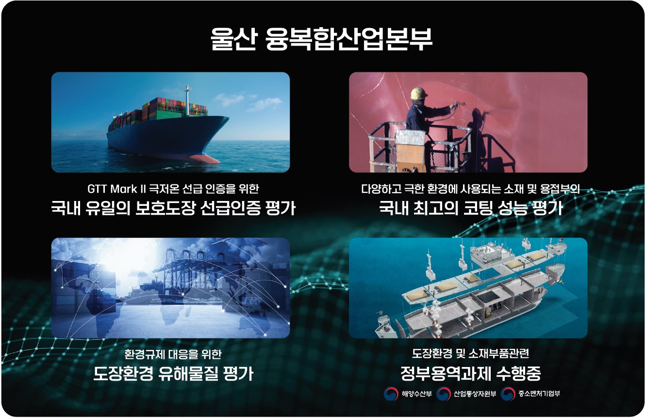 울산 융복합산업본부는 조선해양 분야에서 다양한 시험인증 서비스를 제공하며, 선박의 안전과 성능 향상을 돕고 있습니다.