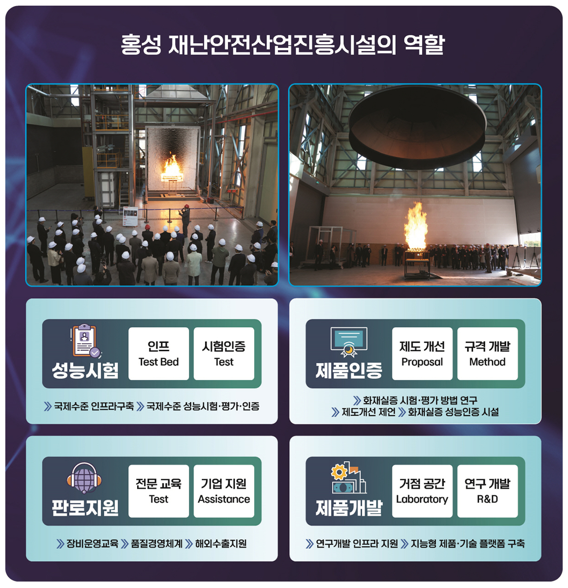 1983년 건축자재 품질검사기관으로 지정되며 건설재료 품질 관리의 초석을 다졌습니다. 1997년에는 계량 및 측정에 관한 법률에 의거하여 공인시험검사기관으로 지정되며 그 전문성과 공신력을 인정받았습니다. 그리고 2002년에는 신뢰성평가센터를 설립하여 건설재료 및 제품의 장기적인 성능과 신뢰성 평가 역량을 강화했습니다. 또한, 2017년에는 KOLAS로부터 창호제품 성능평가 시험기관으로 지정되며 건축물의 에너지 효율 및 안전성 평가에도 기여하게 되었습니다. 이어 2019년에는 방재기술시험센터 홍성시험소를 설립하여 재난 안전 분야의 연구 및 시험 역량을 확대했습니다. 올해 2025년 10월에는 홍성 재난안전산업진흥시설 준공을 통해 재난 안전 산업의 육성 및 발전에 더욱 박차를 가하고 있습니다.
