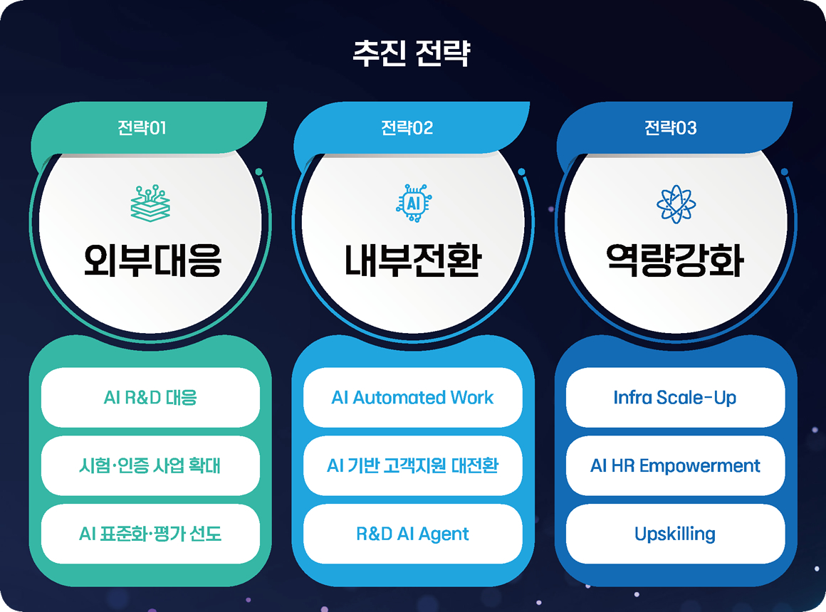 KTR의 AI 전환 전략은 크게 ▲대외 대응 ▲내부 전환 ▲역량 강화 등 3가지 축으로 구성된다. 이와 관련해 구체적인 전략들을 살펴보자.