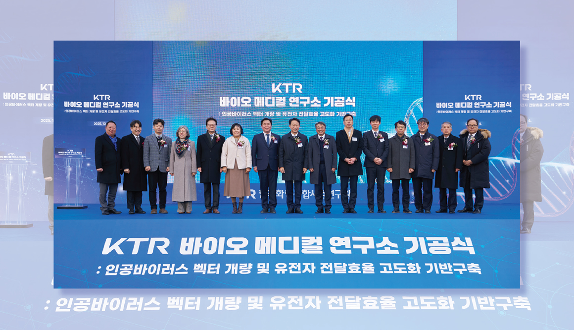 KTR은 지난 12월 4일, 시흥 배곧단지에서 ‘바이오 메디컬 연구소’ 기공식을 성황리에 개최했다. KTR은 시흥 연구소 출범을 통해 바이오 기반 기술지원 및 인공바이러스 벡터 기반 유전자 치료제 플랫폼 구축에 본격적인 착수한다. 2028년 완공을 목표로 부지면적 16,530㎡ 규모에 3개 동으로 건립될 이 연구소에는 국비 100억 원을 포함한 총 253억 원의 사업비가 투입된다.